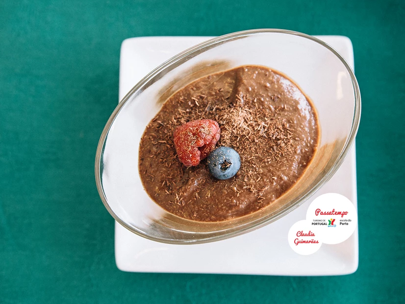 No momento de servir finalize com raspas de chocolate negro e acrescente algumas framboesas.
