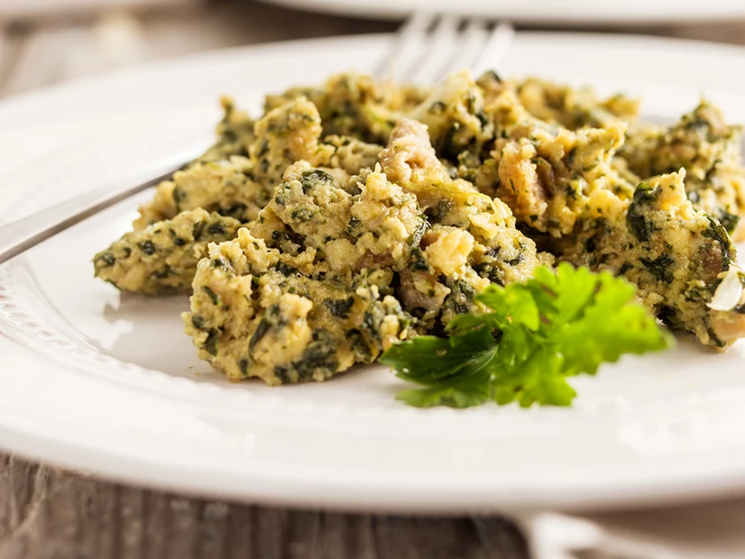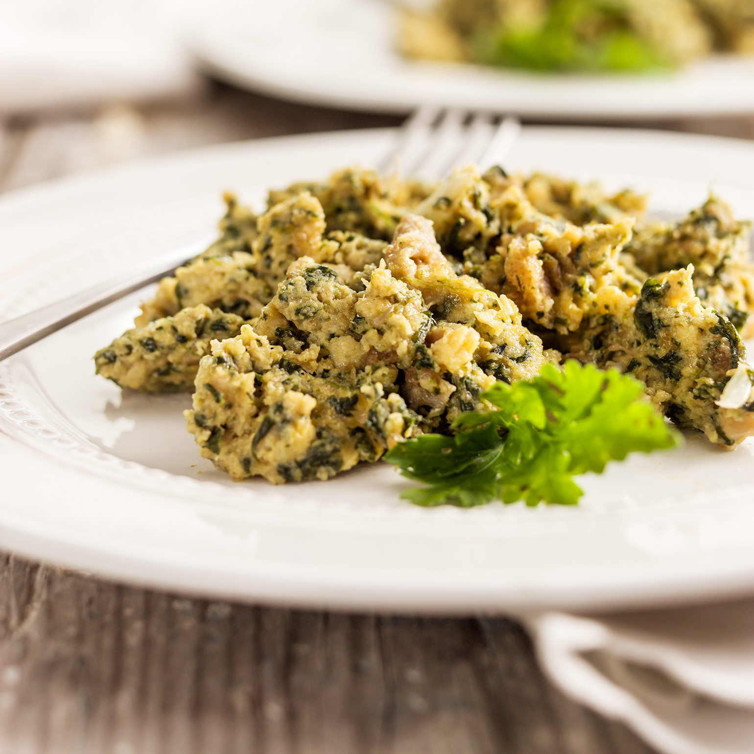 Descongele os espinafres e esprema-os muito bem. Reserve.