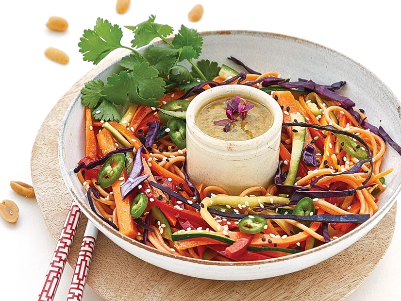 Sirva o pad thai num prato fundo com o molho.