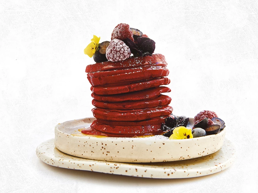 Faça as panquecas numa frigideira anti-aderente quente: verta cerca de ⅓ de chávena do preparado e deixe cozinhar durante 2 a 3 minutos. Vire com a ajuda da espátula e deixe cozinhar do outro lado.