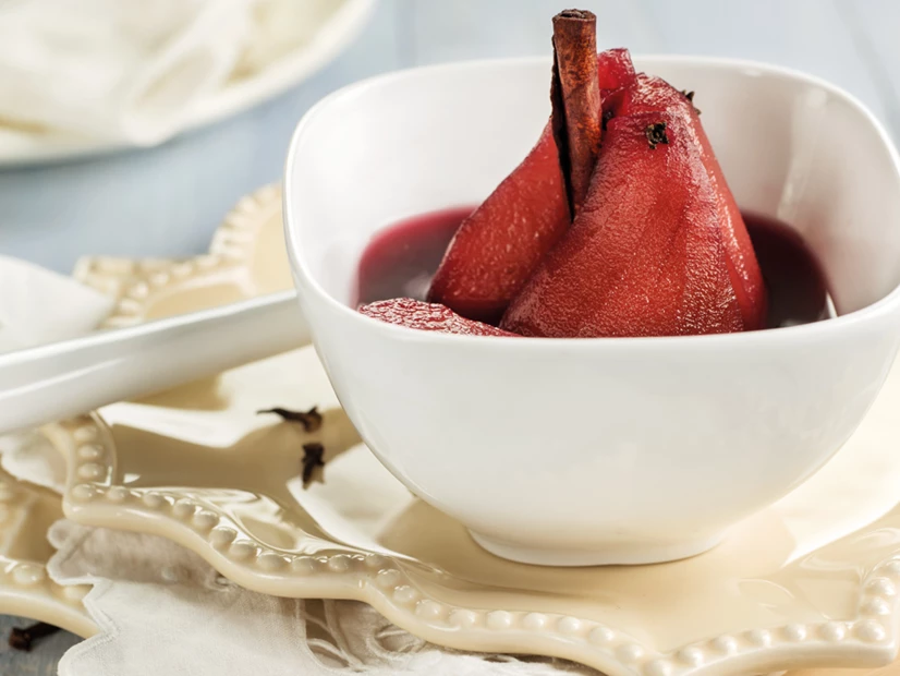 Quando terminar o tempo programado, disponha as peras num recipiente ou em taças individuais. Retire os paus de canela, os cravinhos e a casca de limão vertendo a quantidade de molho que desejar sobre as peras. Deixe repousar durante 20 minutos antes de servir.