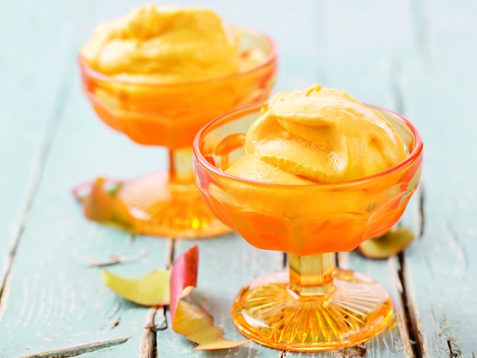 Colocar a manga em cubos no copo. Programar 30 segundos, na velocidade 9 até obter um puré liso.