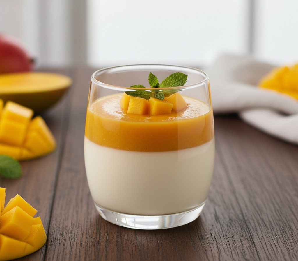Antes de servir, decorar com cubos de manga e lascas de coco a gosto.