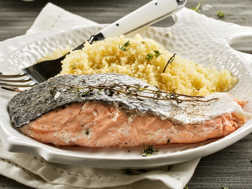 Deixe repousar 10 minutos. Sirva o salmão com o cuscuz de imediato.