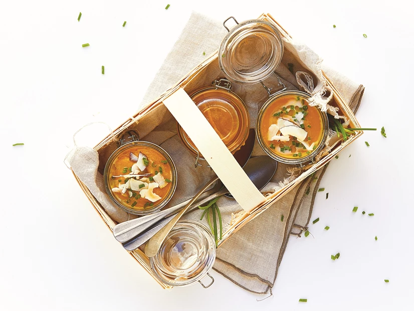 Junte a cenoura descascada e cortada em pedaços, o gengibre ralado, as especiarias, o sal e a pimenta e programe mais 10 minutos na mesma temperatura e velocidade.