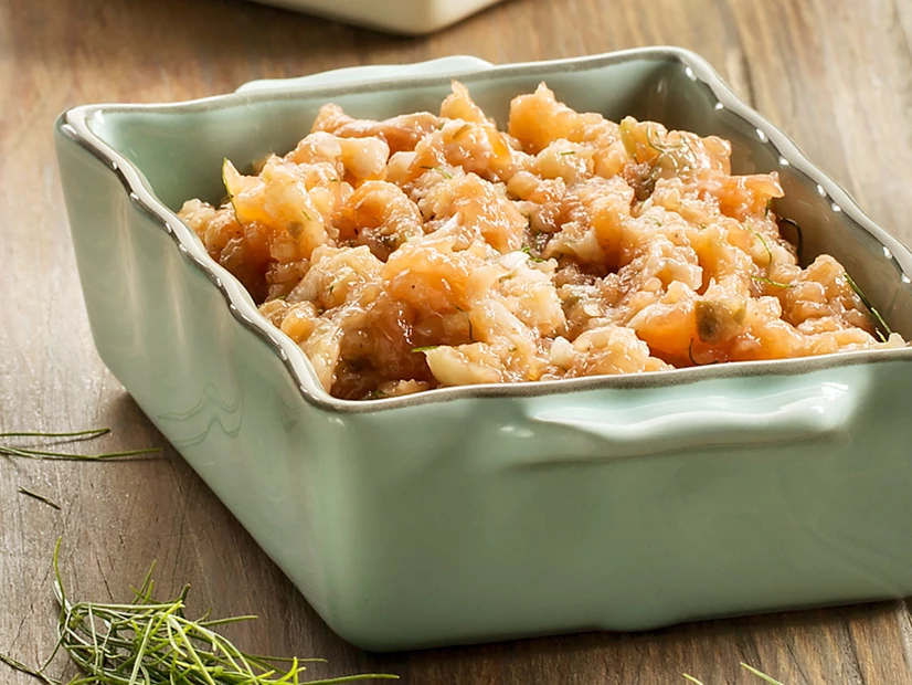 Verifique a consistência do salmão (que não deve ficar moído) e, se necessário, programe mais 3 segundos na velocidade 6. Retifique os temperos. Sirva muito frio.