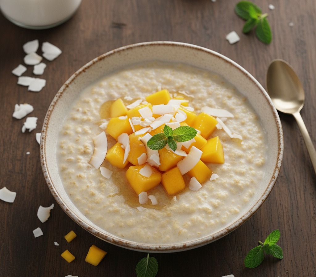 Papas de aveia e coco com manga