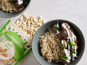 Almôndegas de feijão azuki e caju com molho de iogurte