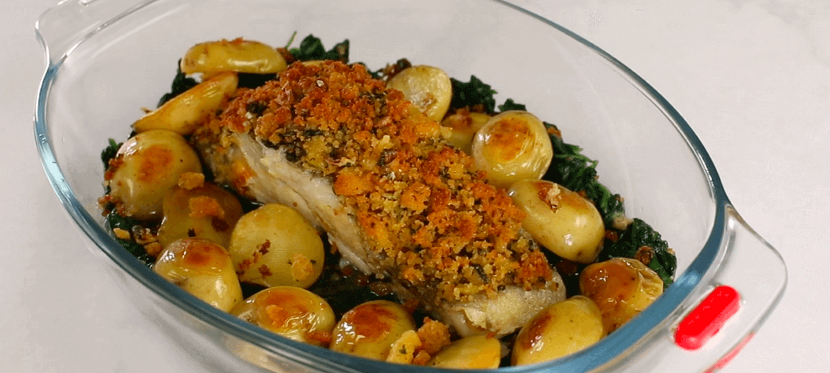 Bacalhau com migas em cama de espinafres
