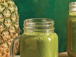 Sumo verde de fruta e espinafres