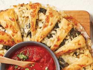 Coroa folhada de vegetais e molho de tomate