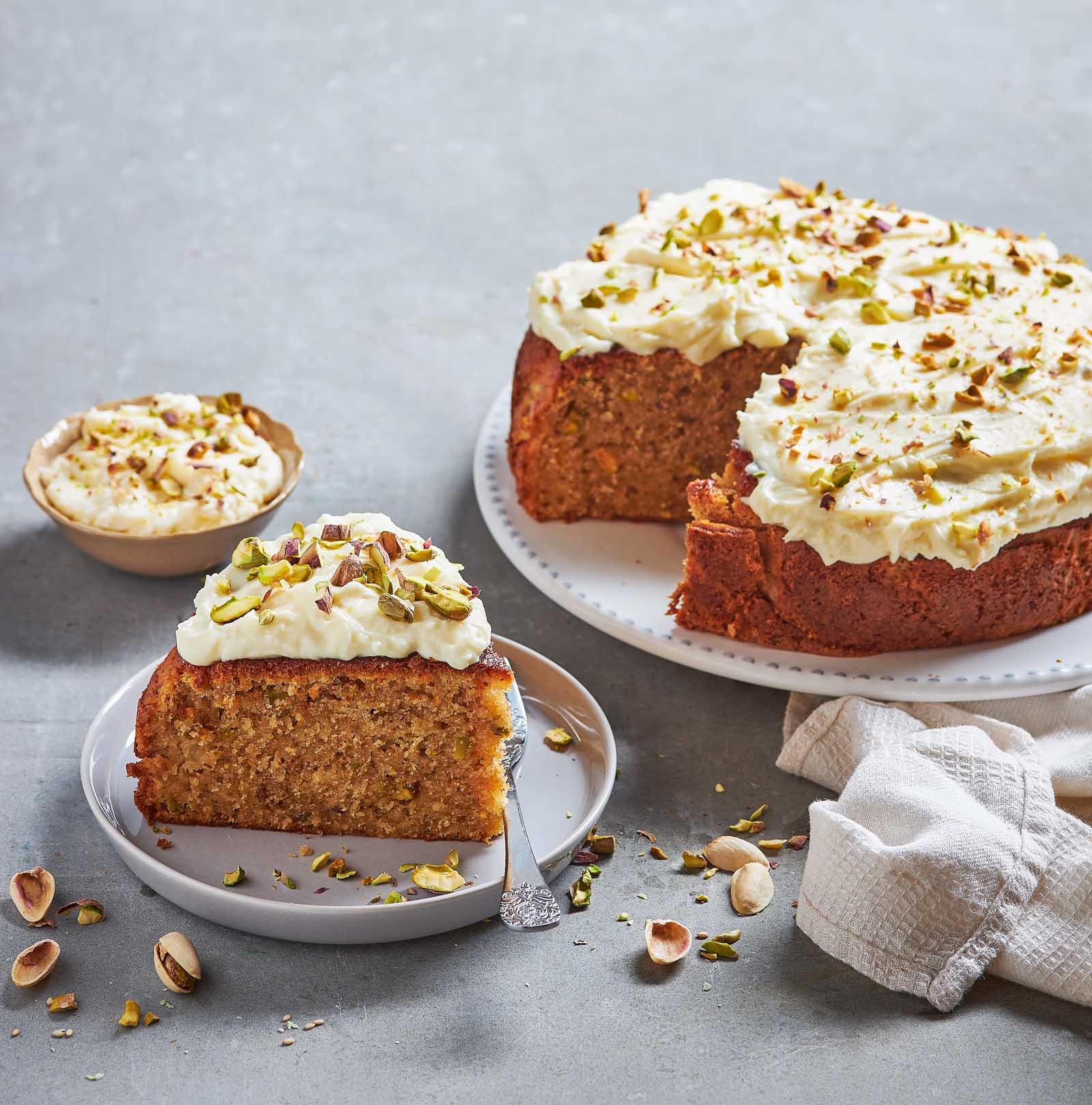 Bolo de pera e pistácios
