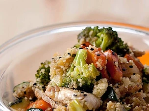 Cuscuz de Frango e Peru com Legumes Salteados